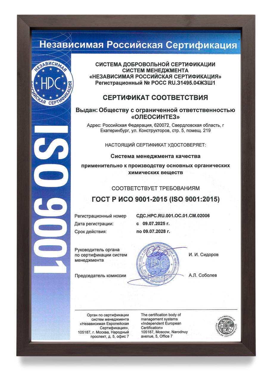 Сертификат ИСО 9001 подтверждает, что система менеджмента качества предприятия соответствует международным стандартам.